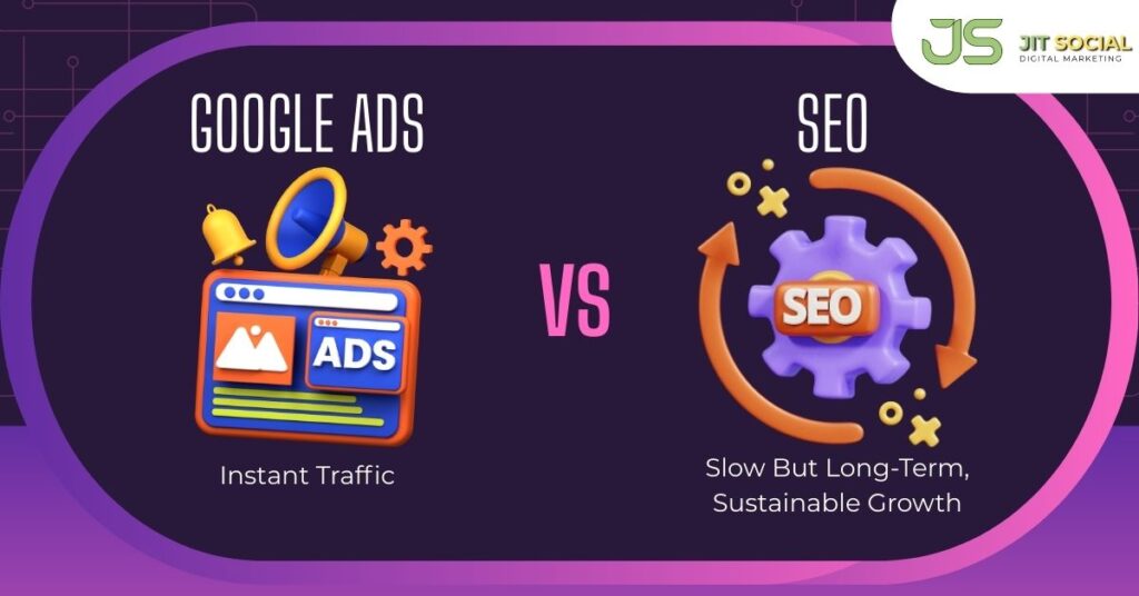 Ads give you immediate exposure, while SEO builds long-term credibility.